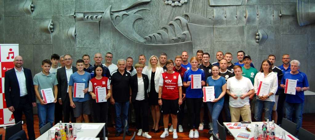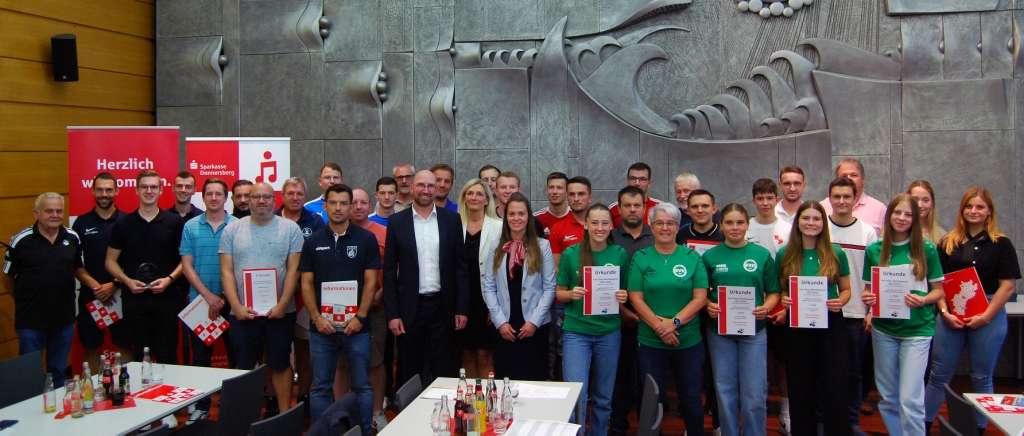 Ein Sportlertreffen im Deutschordensaal hat immer einen guten Grund: Die Sparkassen Kaiserslautern, Kusel und Donnersberg haben die fairsten Fußballmannschaften der letzten Saison ausgezeichnet. Die meisten Vereinsvertreter aus den Fußballkreisen Kaiserslautern-Donnersberg und Kusel-Kaiserslautern traten in Vereinskleidung an und konnten so den berechtigten Stolz über die Auszeichnung im Fair-Play-Wettbewerb zeigen. Als einen „Auftrag in die Gesellschaft hinein“ wollte Hartmut Rohden, stellvertretender Vorstandsvorsitzender der Sparkasse Kaiserslautern, das Engagement seines Hauses verstanden wissen und verwies auf Gemeinsamkeiten zum Fußballsport. So seien beide 150 Jahre aktiv, was nur erfolgreich gelinge, „wenn man dauerhaft fair spielt“. Er hob auch die Bedeutung der Sportvereine hervor: Mädchen und Jungen an den Fußballsport heranzuführen, unterstütze die gesellschaftliche Integration. Die langjährige Unterstützung der Vereine in der Region durch Spenden und Sponsoring stellte auch Ines Born, Marketingleiterin der Kreissparkasse Kusel, heraus. Matthias Roth, Vorstandsmitglied der Sparkasse Donnersberg, unterstrich die Verbundenheit mit der Region und bezeichnete das Engagement der Sparkasse in vielen Lebensbereichen als sehr wichtig. Beim Blick in die Reihen sei ihm aufgefallen, dass auch bei dieser elften Wettbewerbsrunde wieder viele bekannte Gesichter und Vereine benannt wurden, sagte Udo Schöneberger, Vorsitzender im Fußballkreis Kaiserslautern-Donnersberg. Das zeige, dass der Fair-Play-Gedanke nicht nur besprochen, sondern auch über viele Jahre gelebt werde. Insbesondere vor dem Hintergrund, dass sich Umgangsformen und Sprache auf und neben dem Sportplatz verändert haben. Es seien ihm Ausdrücke zu Gehör gekommen, „die auf dem Fußballfeld nichts zu suchen haben“, monierte Schöneberger und appellierte an alle, Sport und Fair-Play hochzuhalten. Kreisschiedsrichterobmann Dirk Leibfried pflichtete ihm bei.