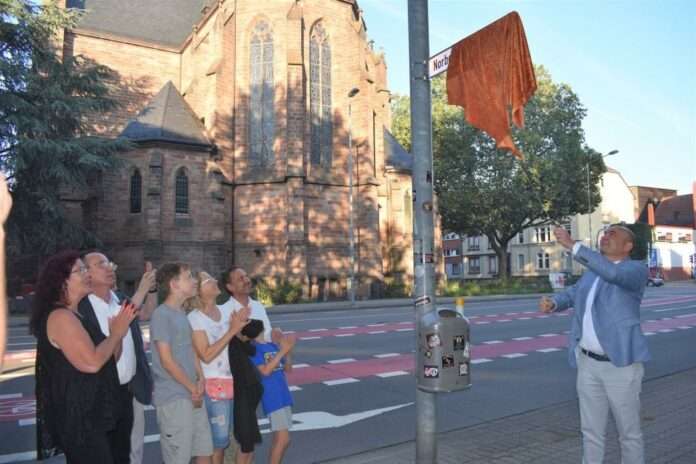 Die offizielle Enthüllung des Straßenschildes geschah im Anschluss an einen Festgottesdienst in der Marienkirche im Gedenken an Norbert und Trixie Thines. Neben Manfred Schulz und Pfarrer Olf würdigte auch der Vorsitzende der Kolpingfamilie, Hans-Georg Mader, das Wirken von Norbert Thines. Ebenfalls mit vor Ort waren einige Mitglieder des Stadtrats.