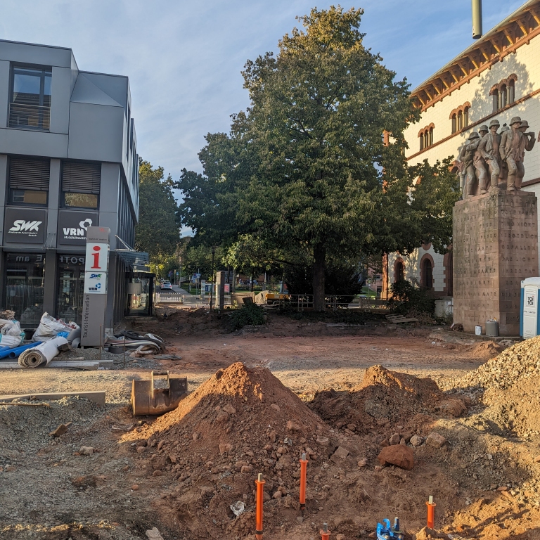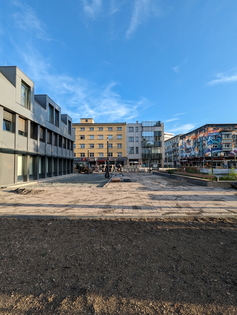 Aktuell gehen die Arbeiten im zweiten Bauabschnitt sehr gut voran. Zurzeit wird ein großer Teilbereich der Wasserleitung südlich der Fruchthalle erneuert, in den nächsten Wochen soll als weiterer Meilenstein die Fahrbahn hergestellt werden.