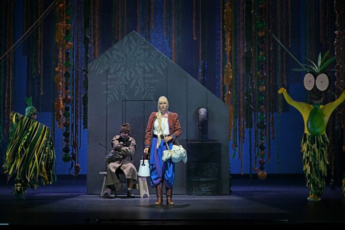 Gleichzeitig ist »Der goldene Brunnen« die erste Produktion, die das Pfalztheater nach einem Wasser- schaden im Dezember vergangenen Jahres wieder auf der Bühne des Großen Hauses spielen kann. Das Märchenspiel, das Otfried Preußler nach einer alten ukrainisch-russischen Legende erzählt, handelt von dem Mädchen Maschenka, das mutig loszieht, um den versiegten Brunnen seines Dorfes mit Hilfe des magischen Wassers des goldenen Brunnens wiederzubeleben. Im Gepäck hat sie drei Wunschhölzer, die ihr die weise Großmutter mitgegeben hat. Unterwegs findet sie in dem ehemaligen Soldaten Mischa