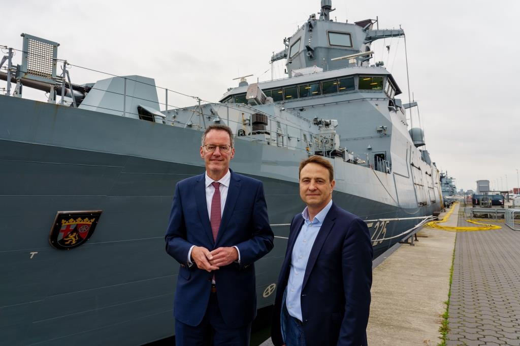 Innenminister Michael Ebling und Dr. David Sirakov, Direktor der Atlantischen Akademie, haben in Gesprächen mit der Marine und insbesondere den Verantwortlichen der Fregatte Rheinland-Pfalz einen künftigen Austausch zwischen Fregattenbesatzung und Akademie vereinbart.