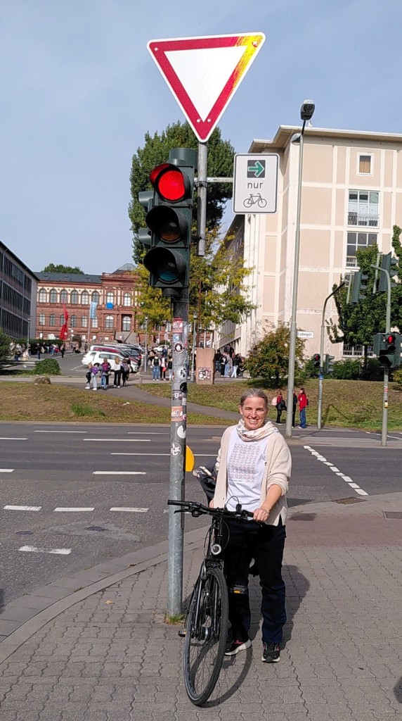 Bild: Freut sich über die neuen Schilder – Radverkehrsbeauftragte Julia Bingeser