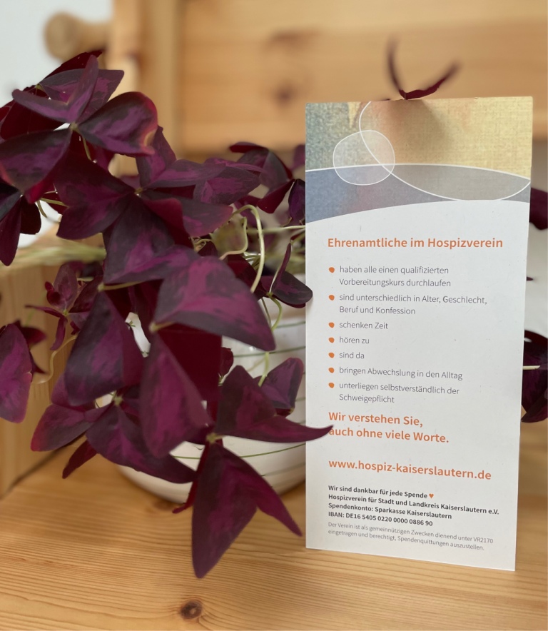 Informieren Sie sich am Montag, den 30. Oktober 2023 über das Ehrenamt im Hospizverein für Stadt und Landkreis Kaiserslautern e.V. .
