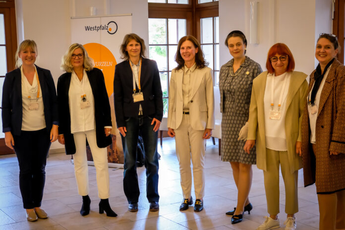 1) Führungsfrauen, von links nach rechts: Delphine Schwab (Leiterin der GOLDBECK Geschäftsstelle Saar-Pfalz), Dr. Heike Jung (Abteilungsleiterin Frauen, MFFKI RLP), Simone Grub (Kaufmännische Direktorin des Pfalztheaters Kaiserslautern), Jutta Metzler (stellv. Vorsitzende der ZRW und IHK-Vizepräsidentin), Angela Pfenninger (M.A. Museum-Theater-Events), Dr. Marion Schulz-Reese (frühere Leiterin des ITWM KL), Veronika Pommer (Regionalleiterin Nordwestpfalz IHK)