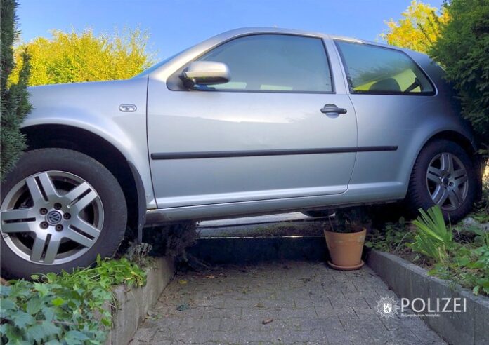 Im Vorgarten eines Hauses ist am Sonntagmittag ein Pkw „gelandet“. Das Auto hatte sich – ohne Fahrer – in der Straße „Geißbergring“ von allein in Bewegung gesetzt. Vermutlich war die Handbremse nicht angezogen und kein Gang eingelegt.