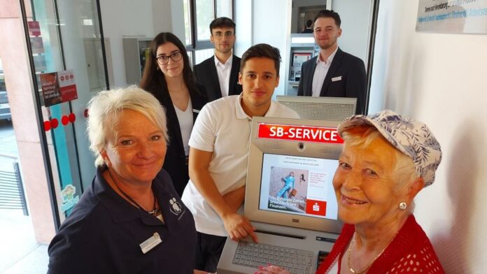 Damit gerade ältere Menschen in der digitalen Welt souverän agieren können, sind digitale Kompetenzen wichtig. Im Rahmen der landesweiten Demografiewoche des rheinland-pfälzischen Sozialministeriums beteiligte sich die Sparkasse Kaiserslautern mit einem besonderen Projekt. Ein Auszubildenden-Team der Sparkasse zeigte dabei Senioren, wie man mit der Hard- und Software an den Selbstbedienungs-Geräten in den Sparkassenfilialen umgeht. Wo muss man drücken, damit das Gerät die Kontoauszüge ausspuckt, wie kann man am SB-Gerät Überweisungen eingeben, wo kann man den Kontostand abrufen? Diese und weitere Fragen beantworteten die Auszubildenden Luis Lehmann, Daniel Nuss, Maurizio Mormone und Jovana Halnais und demonstrierten die notwendigen Handgriffe gleich vor Ort in der Sparkassenfiliale Landstuhl. An eigens eingerichteten Testkonten erklärten die angehenden Ban