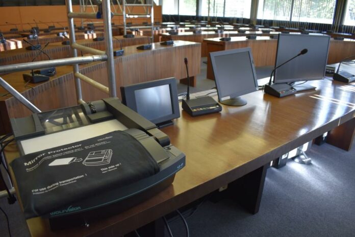 Herz der neuen Anlage ist wie gehabt der Medientechnikraum unter der Tribüne, in dem alle Technikschränke durch zeitgemäße Bauteile ersetzt werden, ergänzt durch einen neuen Netzwerkschrank, der sich in der Wand hinter dem Tisch der Ratsverwaltung verstecken wird. Im eigentlichen Ratssaal werden alle Mikrofone – das betrifft die stationären „Sprechstellen“ an den Plätzen und auf der Tribüne ebenso wie die Handmikros – ersetzt, ebenso der Beamer, die acht Deckenlautsprecher und die Leinwand. Auch die zugehörige Verkabelung wird komplett erneuert. Die Sprechstellen verfügen über Kopfhöreranschlüsse und können auch zur Abstimmung genutzt werden.