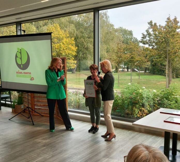 BU: Ministerin Petra Berg und die Geschäftsführerin von Möbel Martin, Prof. Silvia Martin, überreichten Silvia Müller den Preis.