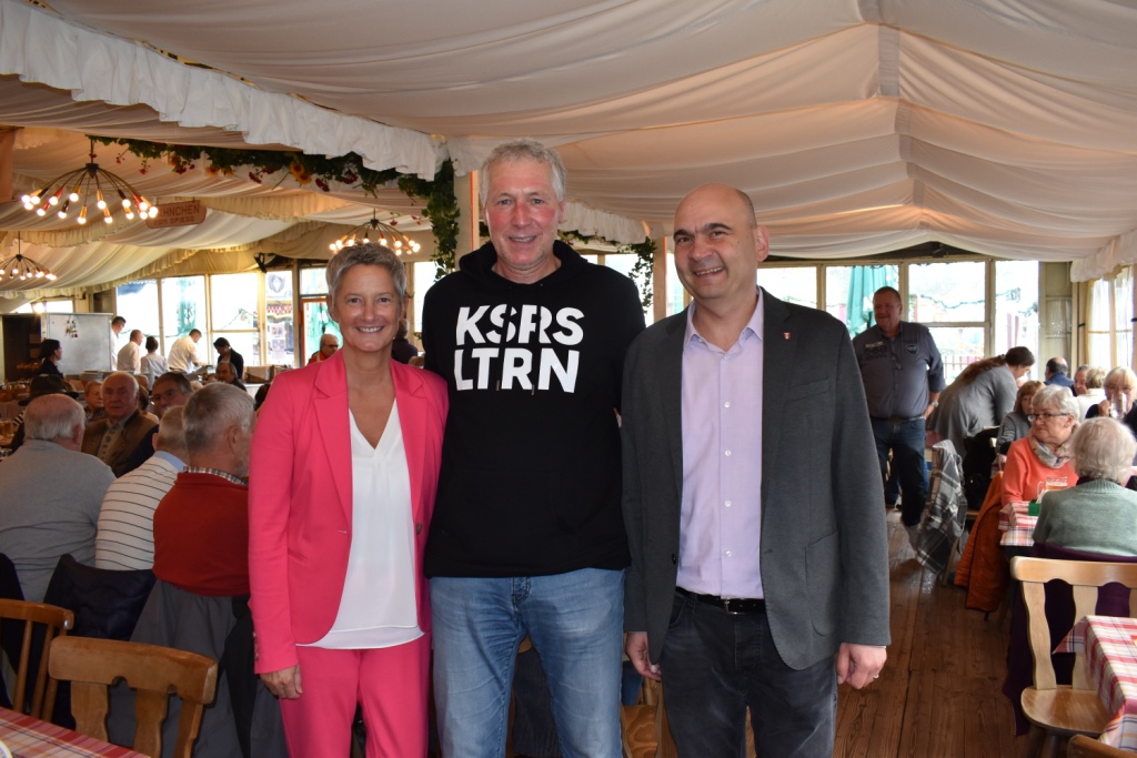 Es ist eine schöne Tradition, dass die Ehemaligen der Stadtverwaltung vom Personalrat an einem Kerwenachmittag ins Lösselzelt auf die Kerwe eingeladen werden. Das betonte auch Oberbürgermeisterin Beate Kimmel, die die vielen ehemaligen Kolleginnen und Kollegen gemeinsam mit dem Personalratsvorsitzenden Peter Schmitt begrüßte. Zu den Ehemaligen zählte in diesem Jahr auch erstmals der Ex-Beigeordnete Peter Kiefer, der es sich nicht nehmen ließ, aus Bad Dürkheim vorbeizuschauen. Auch Bürgermeister Manfred Schulz gesellte sich dazu.