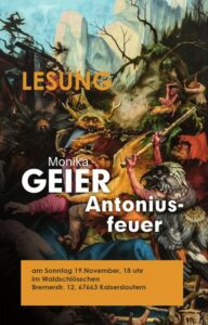 „Antoniusfeuer“ ist der achte Bettina-Boll-Roman von Monika Geier. Für ihr letztes Buch „Alles so hell da vorn“ erhielt sie den Deutschen Krimipreis, für ihren Erstling den „Marlowe“.