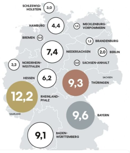 Zu dieser Bewertung hat die Hochschule Kaiserlautern einen sehr großen Beitrag geleistet. Und so kommt es zum Wechsel an der Spitze des ADC Hochschul-Kreativindex 2023: Durch herausragende Ergebnisse vor allem der Studierenden aus Kaiserslautern macht Rheinland-Pfalz einen Sprung von Platz 5 auf Platz 1. Und das mit einem Durchschnittswert für die kreative Exzellenz von 12,2. Auf den weiteren Plätzen folgen Bayern (9,6), Thüringen (9, 3 – dank Bauhaus) und Baden-Württemberg mit 9,1. In der Einzelwertung belegen die Lauterer außerdem den 7. Platz unter gut 60 teilnehmenden Hochschulen.