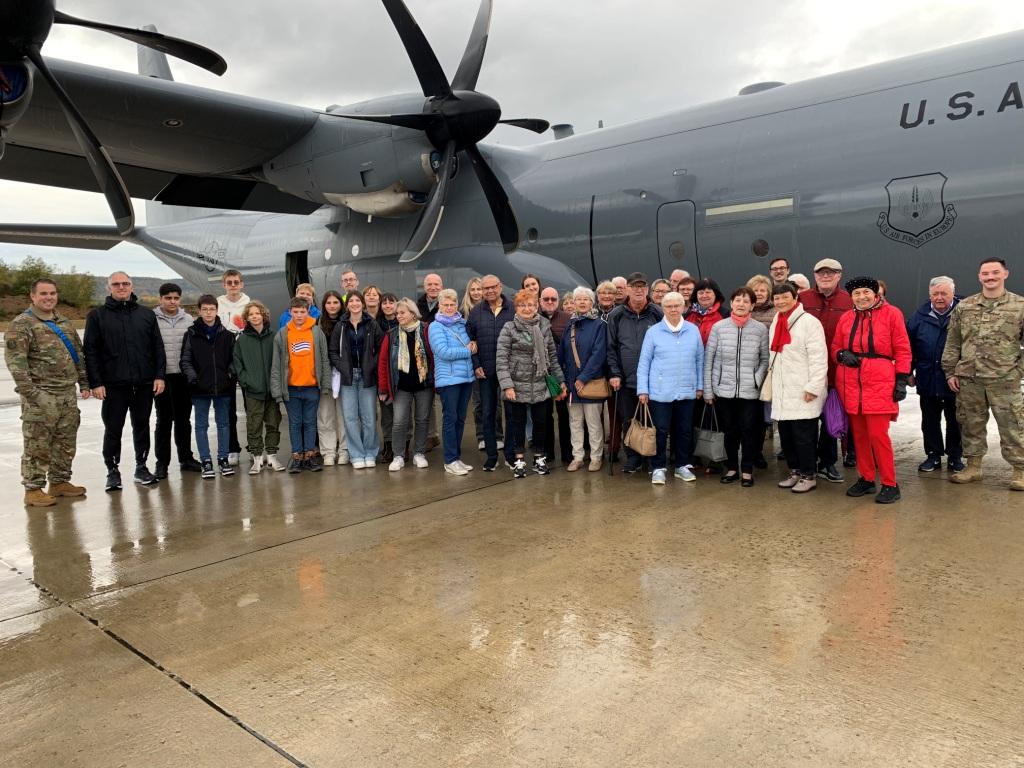 Am 30.10.2023 bot der Seniorenbeirat zusammen mit dem VDAC (Verband Deutsch-Amerkanischer-Clubs) eine Fahrt zur Air Base Ramstein an. Während der zweistündigen Rundfahrt ging es vorbei an Wohnsiedlungen, viele für Halloween geschmückt, Verwaltungsgebäuden, dem Hotel mit großem Einkaufscenter, HQ AIRCOM (einer NATO-Kommandobehörde zur Führung von Luftstreitkräften) etc. Höhepunkt war die Besichtigung eines Flugzeugs vom Typ C-130J Super Hercules, die bei verschiedenen Konfigurationen u.a. diese Möglichkeiten bieten: 56 Patienten liegend oder 123 Personen sitzend oder ca. 21 Tonnen an Fracht zu transportieren bzw. Fallschirmspringer abzusetzen. Ein Blick ins Cockpit war auch möglich. Alle fanden die Fahrt total interessant, einen Einblick in einen Bereich zu bekommen, der normalerweise nicht zugänglich ist.