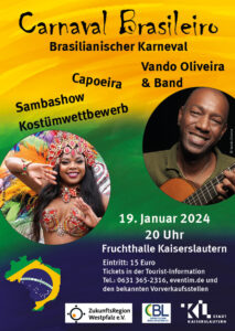 Den Auftakt bildet nun ein „echter“ brasilianischer Karneval am 19. Januar um 20:00 Uhr in der Fruchthalle, mit brasilianischen Sambatänzerinnen und Capoeira-Tänzern, Musikern und dem Sänger Vando Oliveira aus Rio de Janeiro. „Es wird auch eine pfälzische Karnevalskomponente geben“, erläutert Christoph Dammann, Leiter des Referats Kultur und Initiator. „Der profilierte Kabarettist Wolfgang Marschall von den Untieren wird eine „Büttenrede“ zu den hochaktuellen Themen Einwanderung und Aufeinandertreffen verschiedener Kulturen“ halten. Auch ein Kostümwettbewerb werde nicht fehlen, die Gastronomie der Fruchthalle werde entsprechende Drinks und Snacks anbieten.
