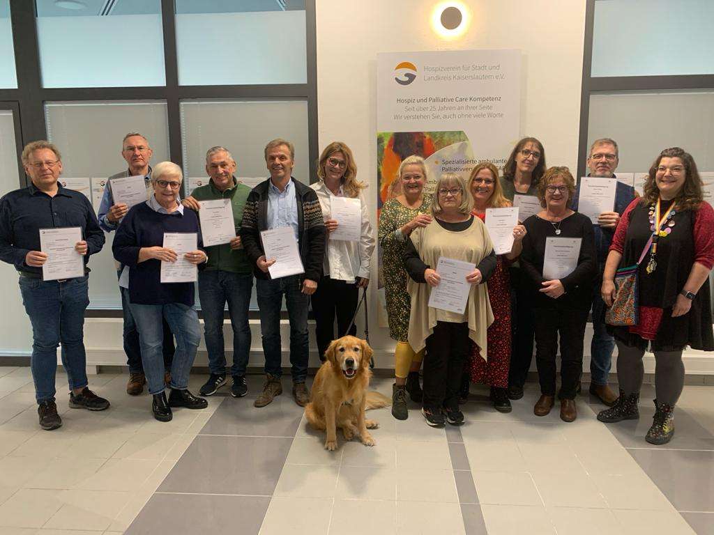 Der Hospizverein für Stadt und Landkreis Kaiserslautern e.V. hat in diesem Jahr 13 interessierte Menschen in einem umfassenden Vorbereitungskurs in ehrenamtlicher Hospizbegleitung ausgebildet. Im Laufe dieser Schulung lernten die Teilnehmenden ihre eigene Einstellung im Umgang mit Sterben, Tod und Trauer zu reflektieren. Neben der Vermittlung von Fachwissen konnten die zukünftigen Ehrenamtlichen auch von dem Umstand profitieren, dass der Hospizverein Kaiserslautern sowohl Träger eines ambulanten Erwachsenen- als auch eines ambulanten Kinder- und Jugendhospizdienstes ist.