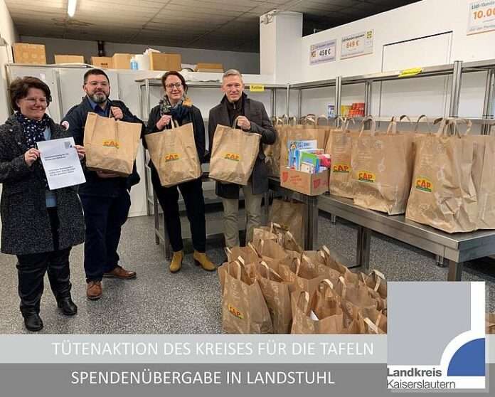 „Wir freuen uns, dass es möglich ist, mit Unterstützung des Aufholpaketes des Landes auch in diesem Jahr die Tüten-Aktion über die Tafeln fortsetzen und Familien über diesen Weg erreichen zu können“, betonte Landrat Ralf Leßmeister, als er in Begleitung von Kreisjugendpflegerin Petra Brenk ein Kontingent der Tüten für die Tafel des DRK in Landstuhl überbrachte. „Wir alle wissen, dass es viele Menschen in existenziellen Notlagen gibt, die Unterstützung brauchen. Die Tafeln und ähnliche Organisationen helfen und geben kostenfrei an Bedürftige Lebensmittel aus – finanziert durch zahlreiche Spenden. Für dieses ehrenamtliche Engagement der Helferinnen und Helfer und die große Spendenbereitschaft der Bevölkerung und der Geschäftswelt danken wir alle von Herzen. Seitens des Kreises möchten wir zu Weihnachten den Familien mit Kindern durch unsere Tütenaktion eine kleine Freude machen.“
