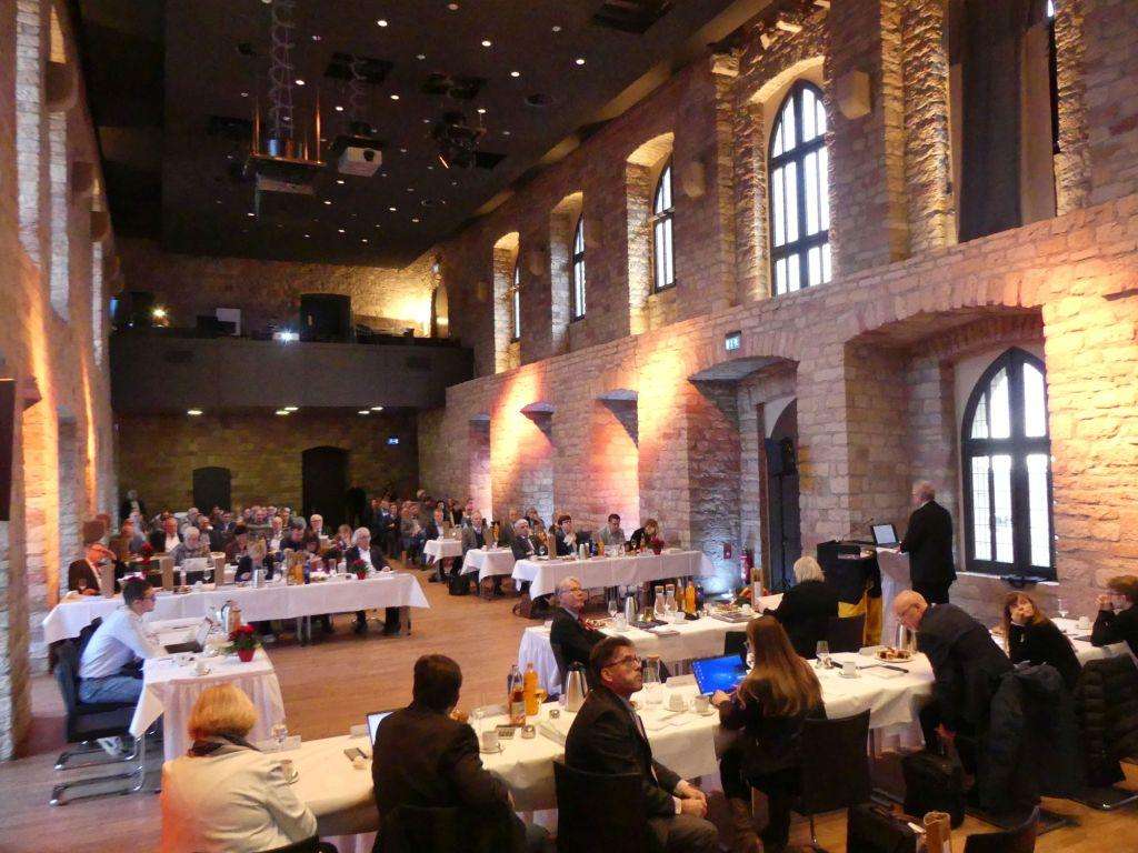 Festsaal des Hambacher Schlosses: Bezirkstagsvorsitzender Theo Wieder bringt den Haushalt für 2024 ein