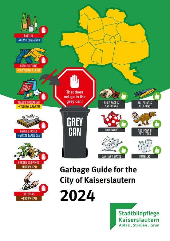 Auch für 2024 hat die Stadtbildpflege Kaiserslautern eine Abfallbroschüre für Englisch sprechende Mitbürgerinnen und Mitbürger veröffentlicht. Der „Garbage Guide for the City of Kaiserslautern“ enthält auf insgesamt 32 Seiten Informationen über Vermeidung, Wiederverwendung, Verwertung und Beseitigung von Abfällen. In der praktischen DIN A 5-Broschüre sind beispielsweise die Anschriften und Öffnungszeiten der städtischen Wertstoffhöfe, die Standorte und Termine der Schadstoffsammlung sowie Details rund um den Abholservice für Sperrmüll und Elektrogroßgeräte angegeben. Außerdem enthält die Broschüre eine Abfallsortierhilfe, die zeigt, welche Abfälle in welche Tonne gehören.
