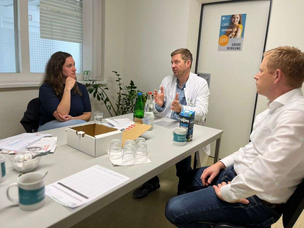 Gemeinsam mit Dr. med. Alexander Ast, Chefarzt der Frauenheilkunde und Geburtshilfe, Andrea Strasser, Leitende Oberärztin des Perinatalzentrums, Michael Marschall, Leiter des Geschäftsbereiches Organisation, Paula Wynne, Teamleitung der Abteilung Qualitäts-, Risiko- und Prozessmanagement, und Meike Camby, Vorsitzende des Vereins „Gemeinsam gegen sexualisiere Gewalt e.V.“ sprach Lea über das neue System und eventuelles Verbesserungspotential. Bisher mussten Betroffene zur Spurensicherung und zwecks Aufnahme eines Verfahrens direkt nach der Tat immer zur Polizei gehen. Dies kann unter anderem zu einer Retraumatisierung führen. „Viele Betroffene können kurz nach der Tat oftmals noch nicht die Entscheidung treffen, ob sie zur Polizei gehen möchten, werden so aber gezwungen, sich direkt mit dem Geschehenen auseinander zu setzen. Einige von ihnen sind zu dem Zeitpunkt noch hoch traumatisiert, können oft nicht mal das Wort „Vergewaltigung“ aussprechen oder haben Erinnerungslücken. Eine sortierte Ausdrucksweise fällt auch vielen Betroffenen schwer. Sowohl für den Patient*innenschutz, als auch für den Erfolg eines geregelten Verfahrens ist es somit extrem wichtig, dass den Betroffenen andere Anlaufstellen als nur der sofortige Polizeikontakt, geboten werden“, so Siegfried weiter.