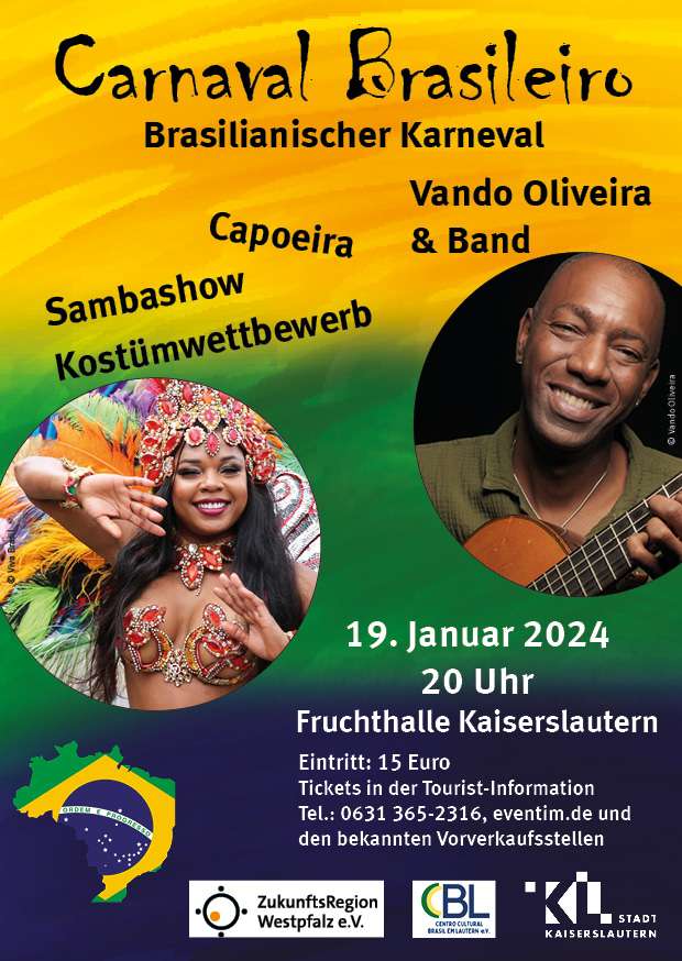 Den Auftakt bildet nun ein „echter“ brasilianischer Karneval am 19. Januar um 20:00 Uhr in der Fruchthalle, mit brasilianischen Sambatänzerinnen und Capoeira-Tänzern, Musikern und dem Sänger Vando Oliveira aus Rio de Janeiro. „Es wird auch eine pfälzische Karnevalskomponente geben“, erläutert Christoph Dammann, Leiter des Referats Kultur und Initiator. „Der profilierte Kabarettist Wolfgang Marschall von den Untieren wird eine „Büttenrede“ zu den hochaktuellen Themen Einwanderung und Aufeinandertreffen verschiedener Kulturen“ halten. Auch ein Kostümwettbewerb werde nicht fehlen, die Gastronomie der Fruchthalle werde entsprechende Drinks und Snacks anbieten. Der Vorverkauf hat bereits begonnen, Eintrittskarten zu 15 Euro gibt es in der Touristinformation, über eventim.de und an allen bekannten Vorverkaufsstellen.