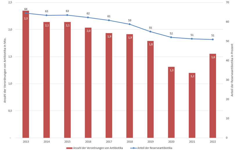 Im Jahr 2022 wurden insgesamt 31 Millionen Verordnungen von Antibiotika im Wert von 733 Millionen Euro zu Lasten der Gesetzlichen Krankenversicherung (GKV) bundesweit abgerechnet. Das entspricht fast jeder 25. ambulanten Verordnung in der GKV. In Rheinland-Pfalz waren es 1,6 Millionen Verordnungen für 36,4 Millionen Euro.
