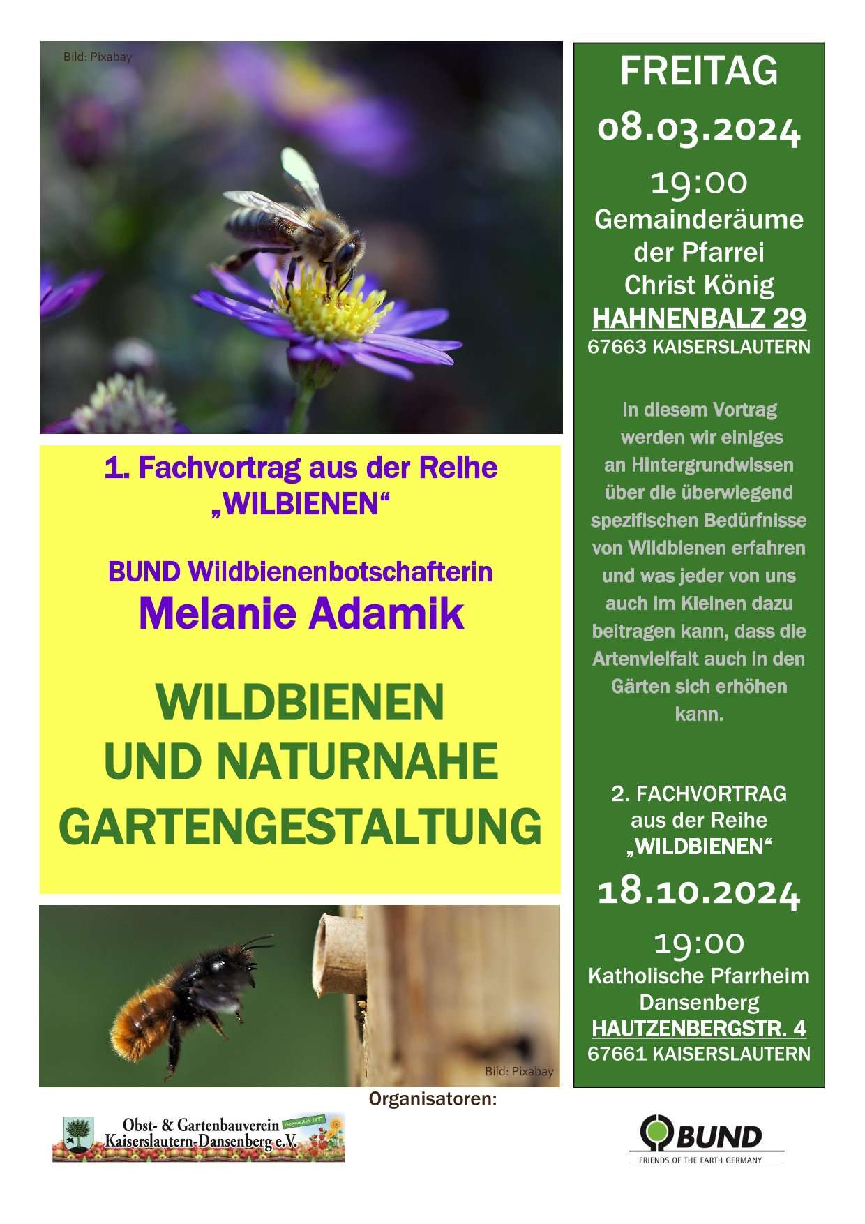 In diesem Vortrag werden wir einiges an Hintergrundwissen über die überwiegend spezifischen Bedürfnisse von Wildbienen erfahren und was jeder von uns auch im Kleinen dazu beitragen kann, dass die Artenvielfalt auch in den Gärten sich erhöhen kann.