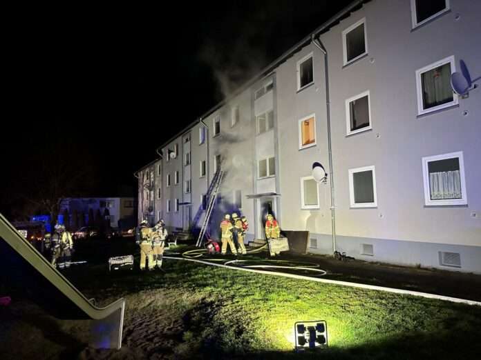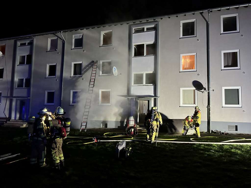 Heute am frühen Morgen wurde die Feuerwehr Kaiserslautern gegen 03:45 Uhr zu einem Gebäudebrand in die Slevogtstraße alarmiert. Schon auf der Anfahrt war eine deutliche Rauchentwicklung sichtbar. Ursächlich dafür war ein Kellerbrand in einem Mehrfamilienhaus. Durch das Feuer kam es zu einer Durchzündung, die die Scheiben aus den Kellerfenstern drückte. Der Treppenraum und die Wohnungen waren soweit verraucht, dass zehn Bewohner das Haus nicht mehr auf dem normalen Weg verlassen konnten. Sie wurden über tragbare Feuerwehrleitern sowie über den Treppenraum gerettet. Parallel wurde der Brand im Keller unter schwerem Atemschutz bekämpft. Zudem wurde bei der Kontrolle des Gebäudes ein Hund gefunden, der ebenfalls gerettet werden konnte. Von den Geretteten musste eine Person aufgrund einer Rauchgasinhalation ins Krankenhaus transportiert werden.
