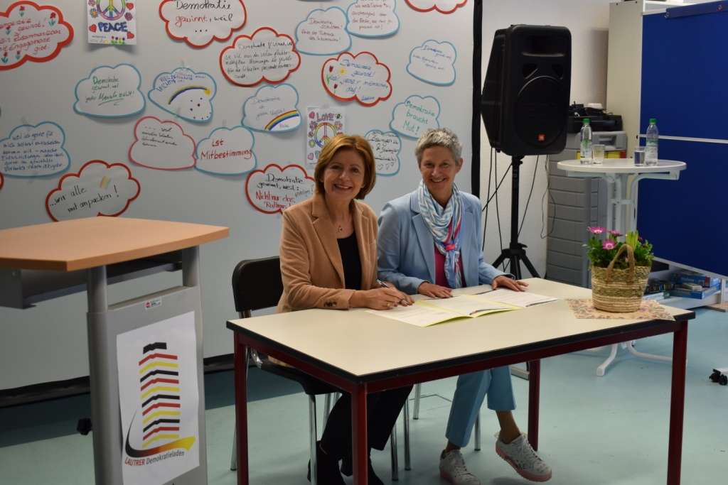 Die Stadt Kaiserslautern ist am Montag offiziell dem Bündnis „Demokratie gewinnt!“ beigetreten – einem Zusammenschluss von derzeit 95 Organisationen aus Rheinland-Pfalz, die gemeinsam für die freiheitlich-demokratische Grundordnung eintreten und dazu beitragen wollen, dass insbesondere junge Menschen frühzeitig an Demokratie, Beteiligung und freiwilliges Engagement herangeführt werden. Vertreten sind unter anderem Städte wie Koblenz oder Ludwigshafen, die Staatskanzlei sowie die verschiedenen Landesministerien, aber auch unterschiedlichste Organisationen und Stiftungen wie das ZDF, der SWR, die Bertelsmann-Stiftung oder die RPTU Kaiserslautern-Landau. Die Beitrittserklärung wurde passenderweise im „Lautrer Demokratieladen“ in der Schneiderstraße unterzeichnet – von Oberbürgermeisterin Beate Kimmel und von der Initiatorin des Bündnisses, Ministerpräsidentin Malu Dreyer, die dafür eigens aus Mainz nach Kaiserslautern gereist war.