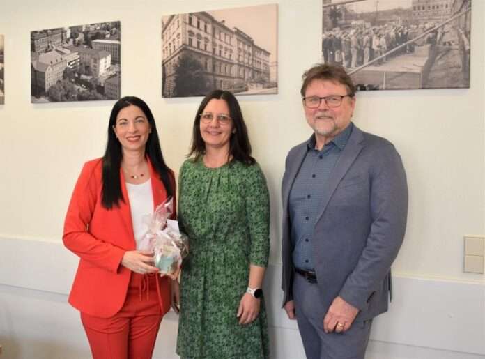 Am Donnerstag, 21. März 2024, hat Schuldezernentin Anja Pfeiffer das Albert-Schweitzer-Gymnasium (ASG) besucht, um dort gemeinsam mit Wolfgang Ernst, Direktor des Referats Schulen, die neue Schulleiterin Stephanie Dojani zu begrüßen. Die Stelle der Schulleitung war seit Ende des Schuljahres 2022/2023 unbesetzt und wurde in dieser Zeit kommissarisch von Oberstudiendirektor Peter Leister, stellvertretender Schulleiter, übernommen. Seit Ende Februar 2024 leitet nun Dojani als Oberstudiendirektorin das ASG mit 779 Schülerinnen und Schülern.