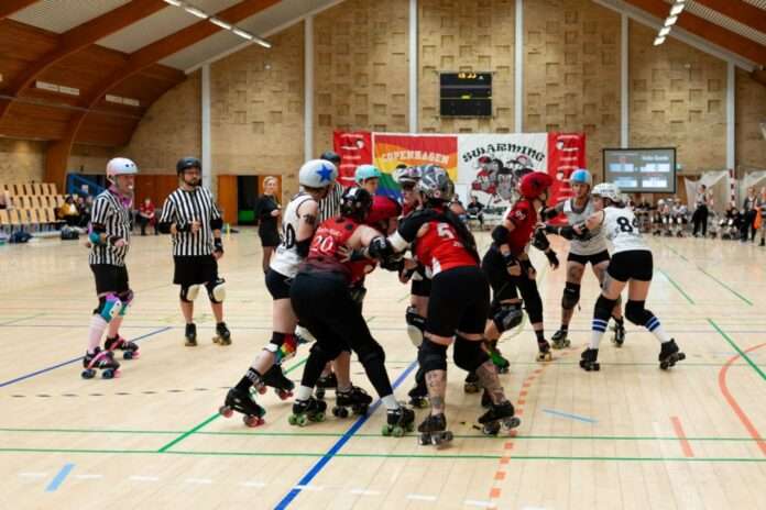 Roller Derby ist, vereinfacht gesagt, eine Art Rollschuhschnelllauf mit Vollkontakt. Während jedes sogenannten Jams, der bis zu zwei Minuten dauert, hat jedes Team fünf Spielerinnen auf dem Feld. Je eine davon ist die Jammerin. Ihre Aufgabe ist es, an den übrigen Mitgliedern des gegnerischen Teams – den Blockerinnen – vorbeizukommen. Für jede überrundete Person gibt es einen Punkt. Die Blockerinnen müssen wiederum versuchen, die gegnerische Jammerin aufzuhalten und der eigenen Jammerin zu helfen. In seiner heutigen Form existiert Roller Derby seit Ende der 90er Jahre und wird vor allem, aber nicht ausschließlich von FLINTA* (Frauen, Lesben, intergeschlechtliche, nichtbinäre, trans und agender Personen) gespielt.