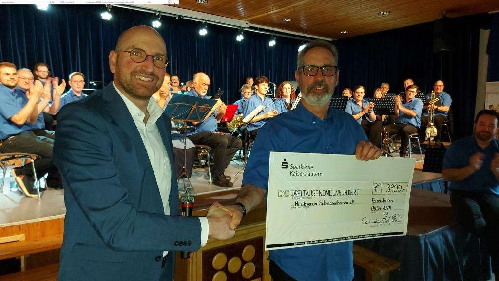 Mit einem Spendenscheck in Höhe von 3.900 Euro kam Hartmut Rohden, stellv. Vorstandsvorsitzender der Sparkasse Kaiserslautern, Anfang April nach Schneckenhausen.
