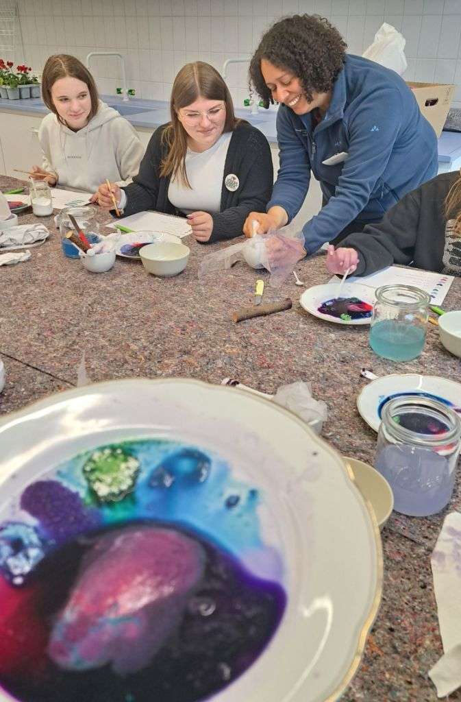 Die Gäste der Eröffnungsfeier konnten sich nach der Begrüßung selbst in den neuen Werkstatträumen umsehen und den Aussichtsturm begutachten. Bereits am Morgen prüften Schülerinnen und Schüler des Wahlpflichtfachs Ökologie aus der 7. Jahrgangsstufe der IGS Enkenbach-Alsenborn, die auch Biosphärenschule ist, die Einrichtung der neuen Werkstätten auf Herz und Nieren. Unter anderem hatten die jungen Leute Spaß an zwei Workshops, die für die Biosphärenakademie entwickelt wurden: „Mit Pflanzen färben“ und „Vom Schaf zur Wolle“.