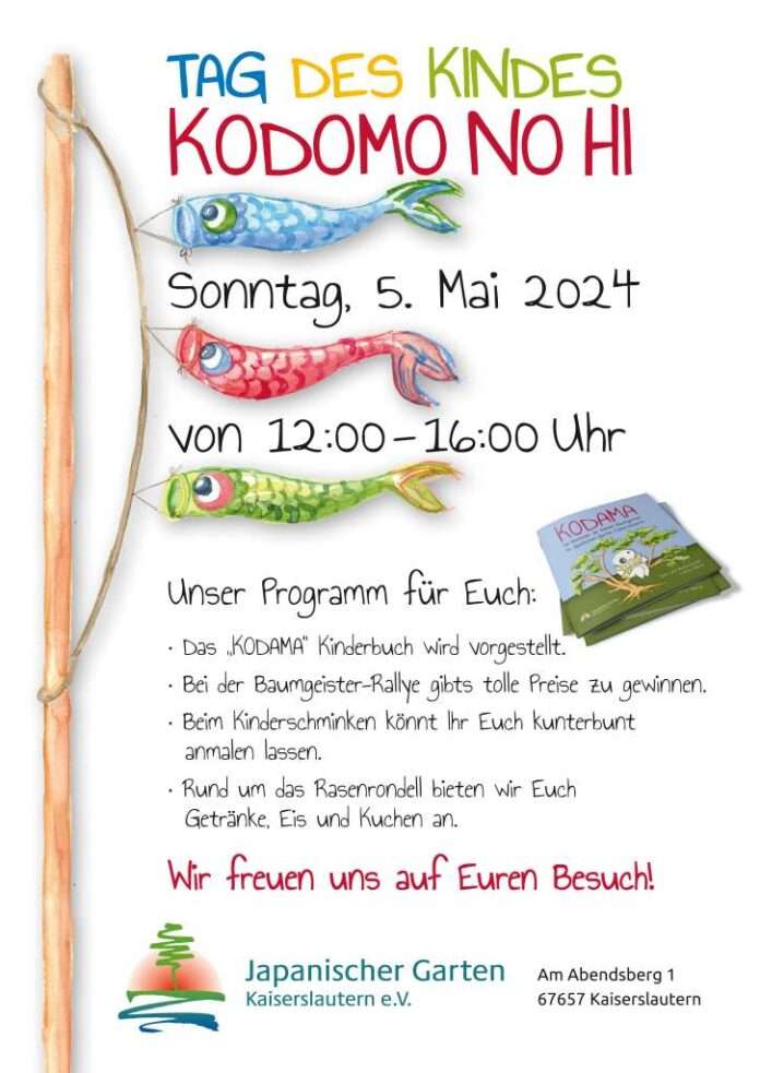 Am 5. Mai wird in Japan Kodomo no Hi, der Tag des Kindes gefeiert. In diesem Jahr wird dieser Tag zu einem besonderen Ereignis im Japanischen Garten Kaiserslautern: Im Garten findet zwischen 12:00 und 16:00 Uhr die Premiere eines fesselnden neuen Kinderbuchs, das die Magie der Baumgeister zum Leben erweckt, statt.