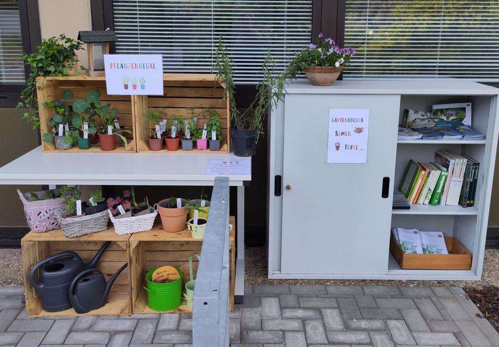 Das Pflanzenregal, eine Initiative der Pfalzakademie Lambrecht und der Arbeitsgruppe Natur und Umwelt der Verbandsgemeinde Lambrecht, soll es zunächst während der Haupt-Pflanzzeit bis zum 30. Juni geben. Im Sinne der Nachhaltigkeit werden solche „Tauschregale“ immer beliebter. Auch Bücher und Haushaltsgegenstände finden bereits auf diese Weise neue Besitzerinnen und Besitzer.