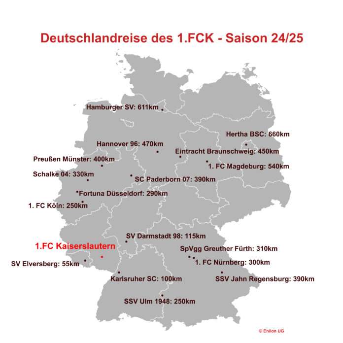 Die Spielpläne der 2. Bundesliga für die kommende Saison 2024/25 werden in den nächsten Wochen von der Deutsche Fußball Liga GmbH veröffentlicht. Die 2. Bundesliga startet am 02. August 2024. Das Erstrundenspiel im DFB Pokal der Roten Teufel findet am Wochenende von 16. bis 18. August 2024 statt. In der Karte findet ihr unsere Gegner in der neuen Saison.