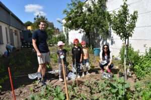 Seit 2020 wird in der Kita Mobile im Asternweg eifrig gegärtnert. Dutzende verschiedene Gemüsesorten, darunter Kartoffeln, Tomaten, Salat und Bohnen, pflanzen die Kinder der Kindertagesstätte jährlich in ihrem Gemüsegarten an – so auch in diesem Jahr wieder. Am Freitagmorgen war großer Pflanztag, an dem Jugenddezernentin Anja Pfeiffer tatkräftig mitwirkte. In Begleitung von den beiden „Gartenbeauftragten“ der Kita, Etienne Martin und Claudia Schneider, ging es in den Garten, wo heute unter anderem Kürbisse, Gurken und Zucchini auf der Pflanzliste standen.