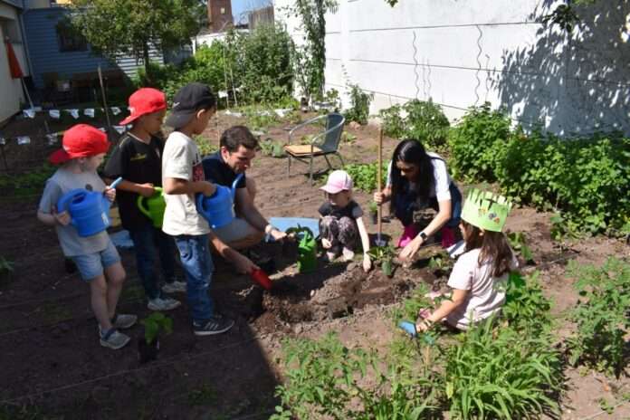 Wie Kitaleiterin Sonja Jahn berichtet, habe man mit dem Garten bei den Kindern einen Nerv getroffen, die mit Feuereifer nun schon im fünften Jahr bei der Sache seien. Davon konnte sich auch Anja Pfeiffer überzeugen, die mit fünf Kindern und sichtlichem Spaß Kürbis- und Zucchini-Pflänzchen einpflanzte und wässerte. „Das ist so ein schönes Projekt! Hier lernen die Kinder spielerisch, woher das Essen auf ihren Tellern kommt, und zugleich werden hervorragende Bioprodukte für die Kita-Küche produziert. Vielen Dank und ein dickes Lob an alle, die hier mit so viel Herzblut bei der Sache sind.“