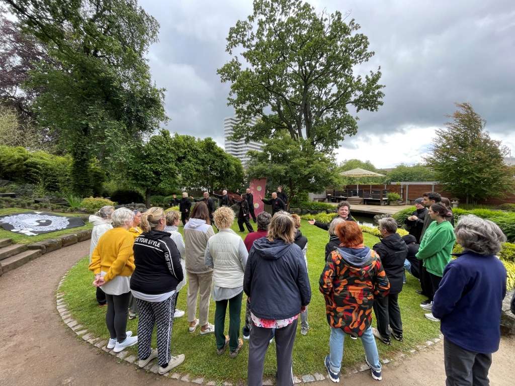 Im Japanischen Garten startete der Tag mit einem ganz besonderen Bewegungsangebot: Um 9:00 Uhr fand Tai Chi mit Frau Sand von der Tai Chi Akademie statt. Zahlreiche Teilnehmer lernten das bewusste Gehen aus dem Tai Chi.