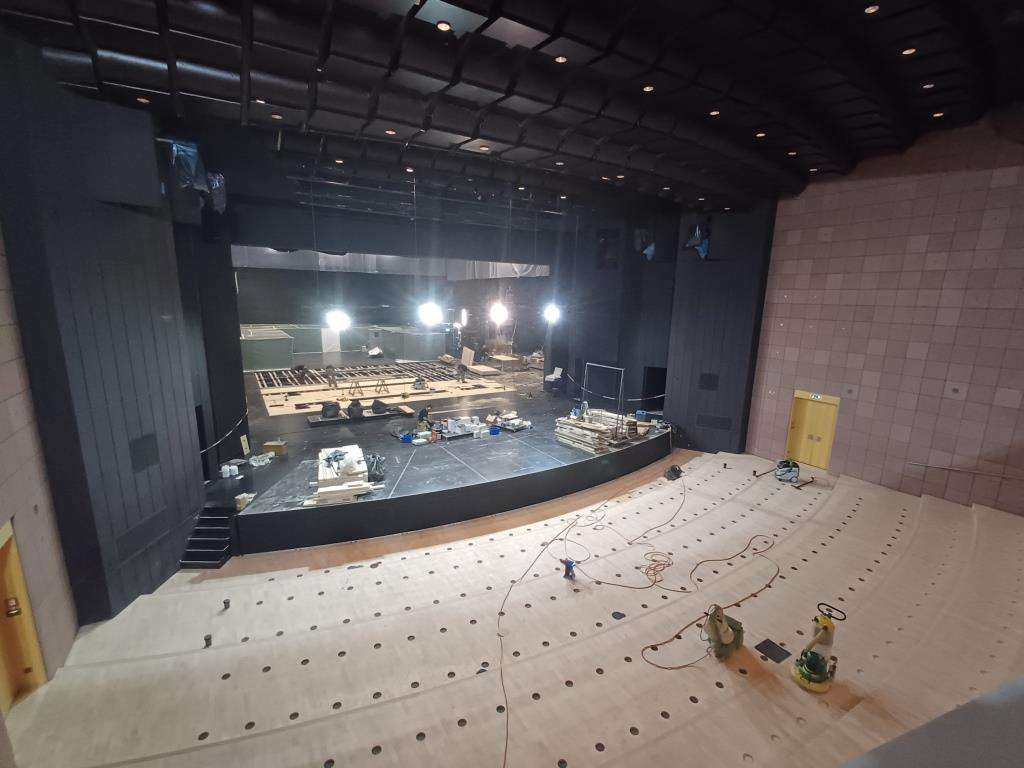 Dort, wo noch nicht geschehen, wird auf der Bühne derzeit der komplette Holzbelag ausgetauscht. Insgesamt handelt es sich um eine Fläche von etwa 1.400 Quadratmetern. Der alte Holzboden ist stark abgenutzt, beispielsweise durch Schrauben, die für die Befestigung von Bühnenbildern in das Holz eingedreht wurden, und der Lack ist stellenweise beschädigt. Da die Bühne während des Spielbetriebs enorm beansprucht wird, wurde die Renovierung notwendig.