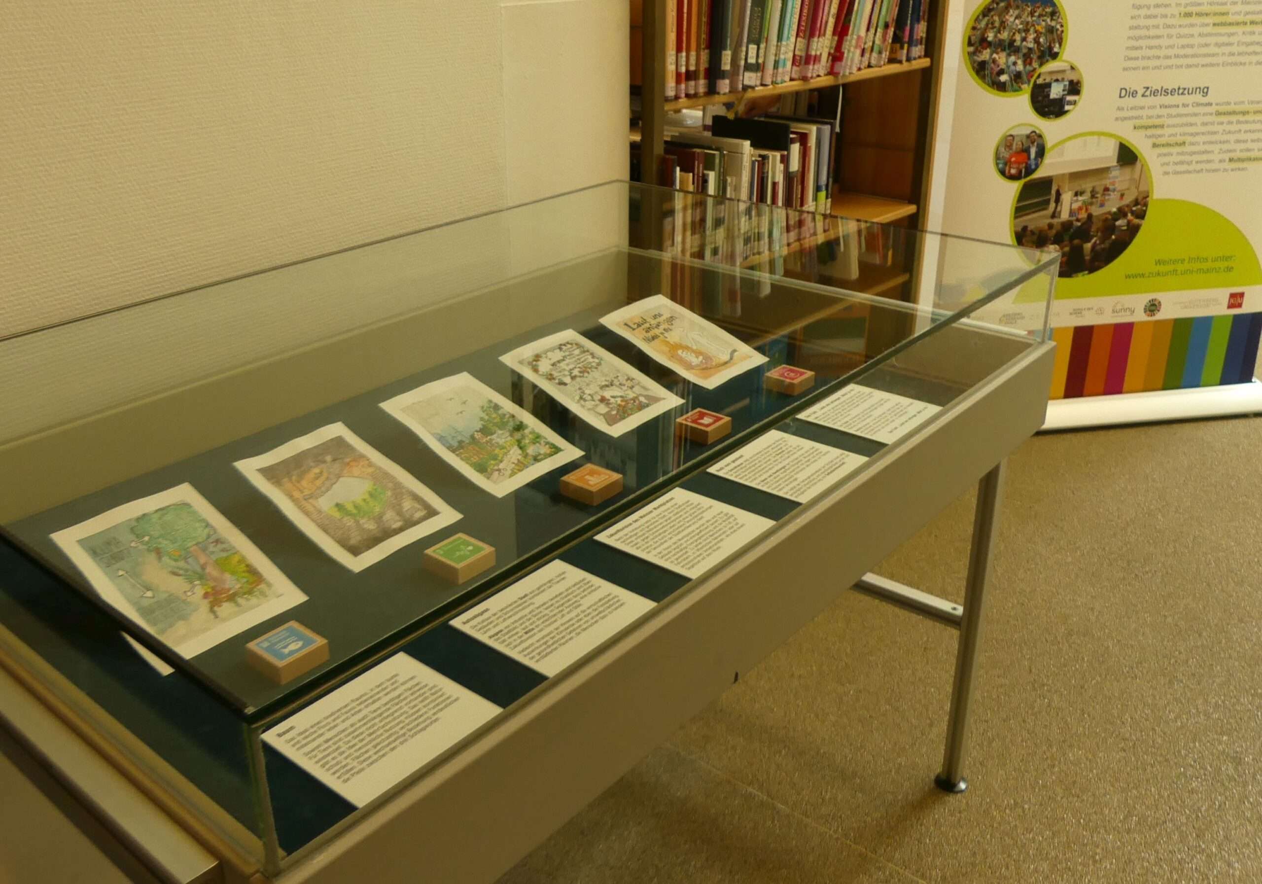 Bilder, Texte und Gedichte verdeutlichen ein wichtiges Thema, den Klimawandel, in der Ausstellung „Vision for Climate. The influencing Exposition“ in der Pfalzbibliothek in Kaiserslautern, Bismarckstraße 17. Hierzu finden sich auch verbildlichte und verschriftlichte eigene Gedanken und Situationen. Ein Beispiel dafür sind die Bilder von Lisa Kinder.