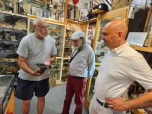 Etwas versteckter, wenn aber nicht minder interessant, ist Dieters Steine- und Bergbausammlung in den Stauchwiesen. Dieter, das ist Dieter Weyhersmüller, passionierter Hobbygeologe und Bergbau-Experte. Auf über 35qm Ausstellungsfläche hat er in liebevoller Kleinarbeit und mit viel Fachwissen Mineralien und Fossilien zusammengetragen. Ausgesuchte Steine von rund 130 Fundstellen rund um Kaiserslautern sind zu bewundern, plus viele weitere Fundstücke aus aller Welt, die er seinen Gästen spannend und unterhaltsam zu präsentieren weiß, so auch beim Besuch des Bürgermeisters. Seine besondere Aufmerksamkeit gilt dem Berufsleben der Bergleute. Hier sind viele Exponate wie etwa Grubenlampen oder traditionelle Trachten zu sehen. Der Eintritt ist frei, jedoch nur nach vorheriger telefonischer Vereinbarung möglich.