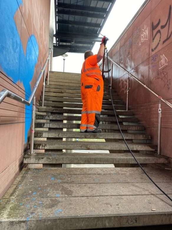 (c) Stadt Kaiserslautern: Bei der Reinigung der Treppe.