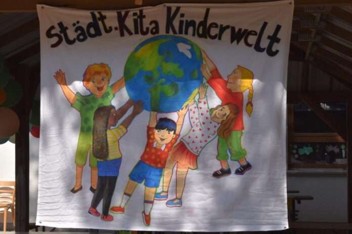 Am Freitag, 30. August 2024, hat auf dem Außengelände der Kita Betzenberg eine kleine Feier anlässlich der Umbenennung in die „Kita Kinderwelt“ stattgefunden. Damit erhielt nun auch der letzte städtische Kindergarten einen kreativen Eigennamen und damit auch ein neues Logo.