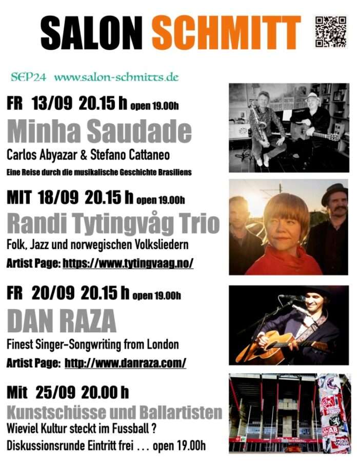 Neben drei musikalisch herausragenden Acts mit Musik aus Norwegen, Grossbritannien und Brasilien findet am Mittwoch den 25. September eine Diskussionsrunde statt, die der Frage nachgeht: „Kunstschüsse und Ballartisten: Wie viel Kultur steckt im Fußball?“