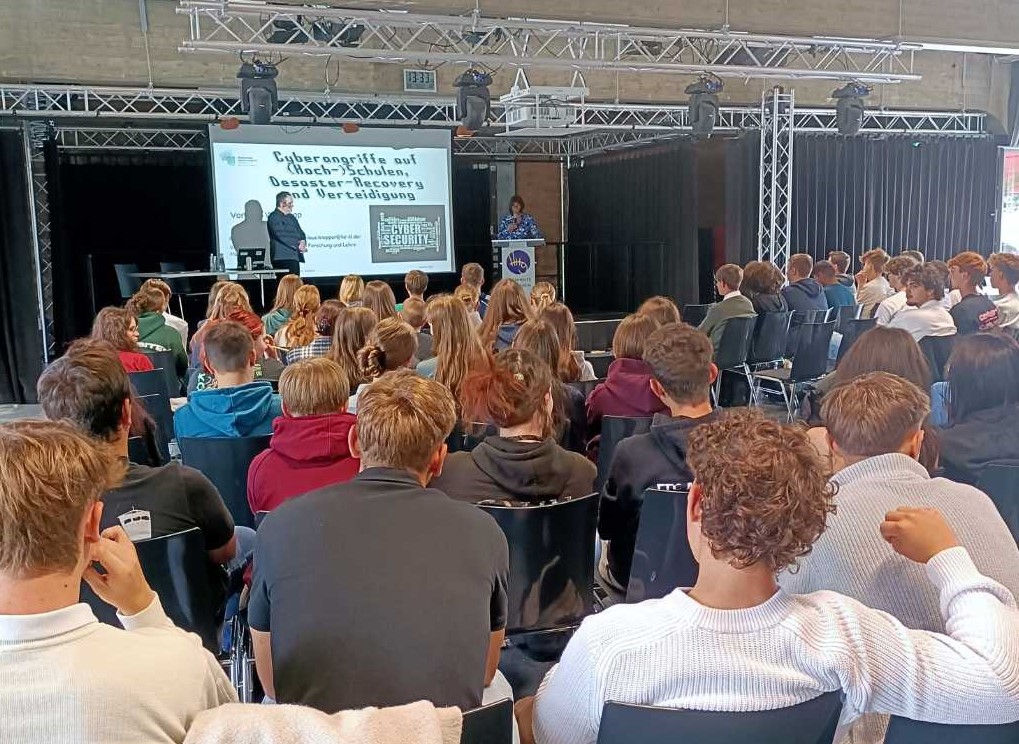 Neben der Vertragsunterzeichnung fand ein spannender Vortrag von Prof. Dipl.-Ing. Klaus Knopper, dem Vizepräsidenten für Digitalisierung der Hochschule Kaiserslautern, statt. Professor Knopper ist langjähriger Open-Source-Software-Entwickler und anerkannter Experte auf den Gebieten Software Engineering und IT-Sicherheit. Unter dem Titel „Cyberangriffe auf (Hoch)-Schulen – Vorgehen der Angreifer und Verteidigung“ bot Professor Knopper den anwesenden Schülerinnen und Schülern sowie Lehrkräften spannende Einblicke in die Gefahren durch Cyberangriffe und vor allem bot er Hinweise, wie man sich gegen diese effektiv schützen kann.