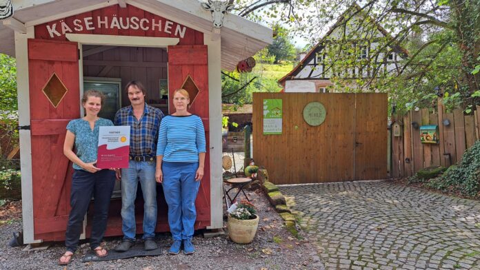 Am Eingangstor zur Hauensteiner Mühler weist künftig ein Schild den Hof als Biosphären-Partner aus. Damit gehört die Hauensteiner Mühle zu einem Netzwerk von rund 60 Betrieben, die nach bundesweit einheitlichen Qualitäts- und Umweltstandards zertifiziert wurden und sich durch ihr Engagement für Umwelt und Natur auszeichnen. „Unsere Partner und Partnerinnen stehen für die Produktvielfalt des Pfälzerwalds und der Weinstraße. Sie zeigen mit ihrer Arbeit, wie Nachhaltigkeit ganz praktisch in unser Modellregion für nachhaltige Entwicklung umgesetzt wird“, erklärte die Direktorin des Biosphärenreservat Pfälzerwald-Nordvogesen, Dr. Friedericke Stakelbeck bei ihrem Besuch vor Ort.