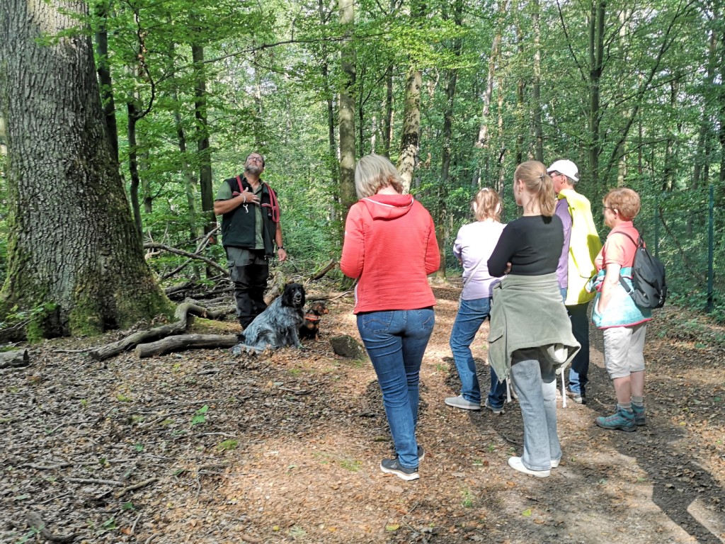 Der Spaziergang zum Thema „Klimawandel im Wald und klimaangepasstes Waldmanagement“ führte durch ein Waldstück, das in der Donnersberger Straße an das Referat Grünflächen angrenzt. Dabei gab Jens Heinz, zuständiger Förster des Referats, Einblicke in die Folgen des Klimawandels im Stadtwald. Diesen als „Grüne Lunge“ sowie als Erholungs- und Rückzugsort für die Bürgerinnen und Bürger zu erhalten, hat für die Stadtverwaltung eine sehr hohe Priorität. Daneben gilt es, die Multifunktion des Waldes hinsichtlich des Wasserrückhalts bei Starkregen zu stärken. „Eine Entnahme von Bäumen im Stadtwald in Zeiten des Klimawandels erfolgt in erster Linie nur aus Gründen der Verkehrssicherung im Wald oder bei einem Krankheitsbefall von Bäumen“, erklärte Förster Jens Heinz. Entnahmen aus wirtschaftlichen Gründen seien nicht mehr so vordergründig wie in früheren Zeiten. Im Stadtwald könne auf vielen Flächen die Natur Natur sein und werde nur im Bedarfsfall ökologisch unterstützt.