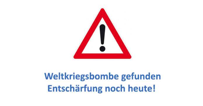 Diese wird bereits HEUTE gegen 22 Uhr durch den Kampfmittelräumdienst entschärft.