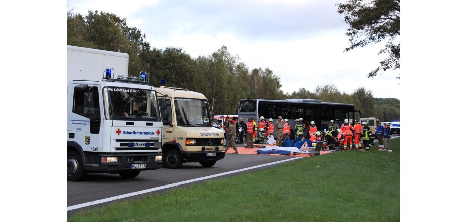 Bei der Übung wurde das Szenario eines Busunfalls mit vielen Verletzten von ca. 80 deutschen und amerikanischen Einsatzkräften abgearbeitet. Dabei simulierten Jugendliche einer amerikanischen Schulklasse als Statisten die Opfer eines möglichst realistischen Unfallgeschehens.