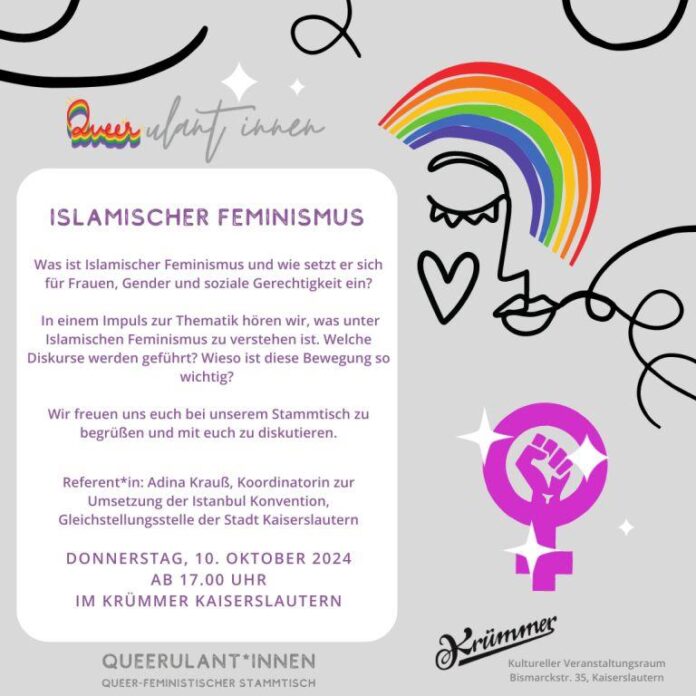 Queer-feministischer Stammtisch am 10. Oktober 2024, ab 17 Uhr im Kulturellen Veranstaltungsraum Krümmer, Bismarckstr. 35