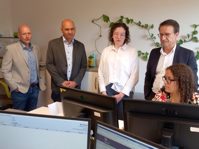 Um die Einreise qualifizierter Arbeitnehmerinnen und Arbeitnehmer aus dem Ausland zu erleichtern und damit die Wirtschaftskraft in Rheinland-Pfalz weiter zu stärken und zu sichern, hatte das Land 2021 der Zentralen Ausländerbehörde für Fachkräfteeinwanderung (ZAB) in Kaiserslautern die Durchführung aller beschleunigter Fachkräfteverfahren für das gesamte Bundesland übertragen. Nun informierte sich der Beauftragte der Landesregierung für Migration und Integration, Miguel Vicente, über die Struktur und Arbeit der Fachkräftebehörde sowie deren aktuelle wie zukünftige Herausforderungen. „Ihre Dienstleistung ist etwas ganz Besonderes“, bilanzierte er abschließend gegenüber Fachbehördenleiter Andreas Adelmann und seinem Team, dessen ansprechende Führung auch Bürgermeister Manfred Schulz mit begleitete.